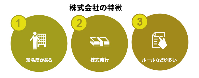 株式会社の特徴はその知名度にあります。通常一般層にとって、会社というと株式会社と連想される位に株式会社とはメジャーな存在であるといえます。株式会社という単語の持つイメージは大きな宣伝効果を持っているといえます。