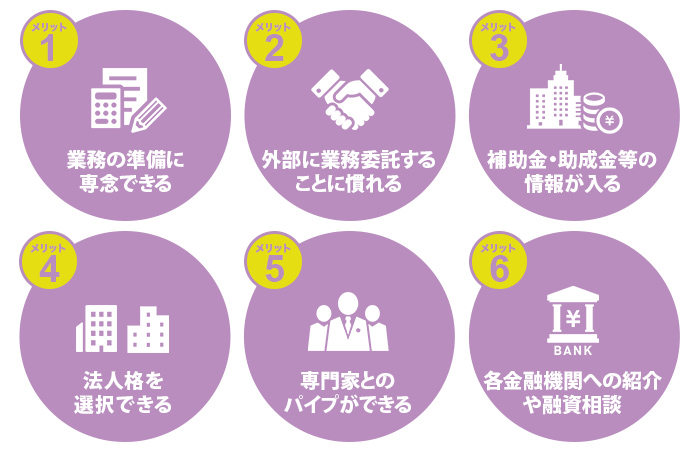 | 外部の専門家に依頼することにより、「外部に業務を委託する」ことに慣れることができる | 起業すると、内部(社員)・外部(専門家・業務委託など)に、様々なタスクを依頼しなければならない。自分で会社設立を行おうとすると、「お金がかからないから」、「自分でやった方が」など、「何でも自分で抱え込むくせ」ができてしまう可能性もある。 |